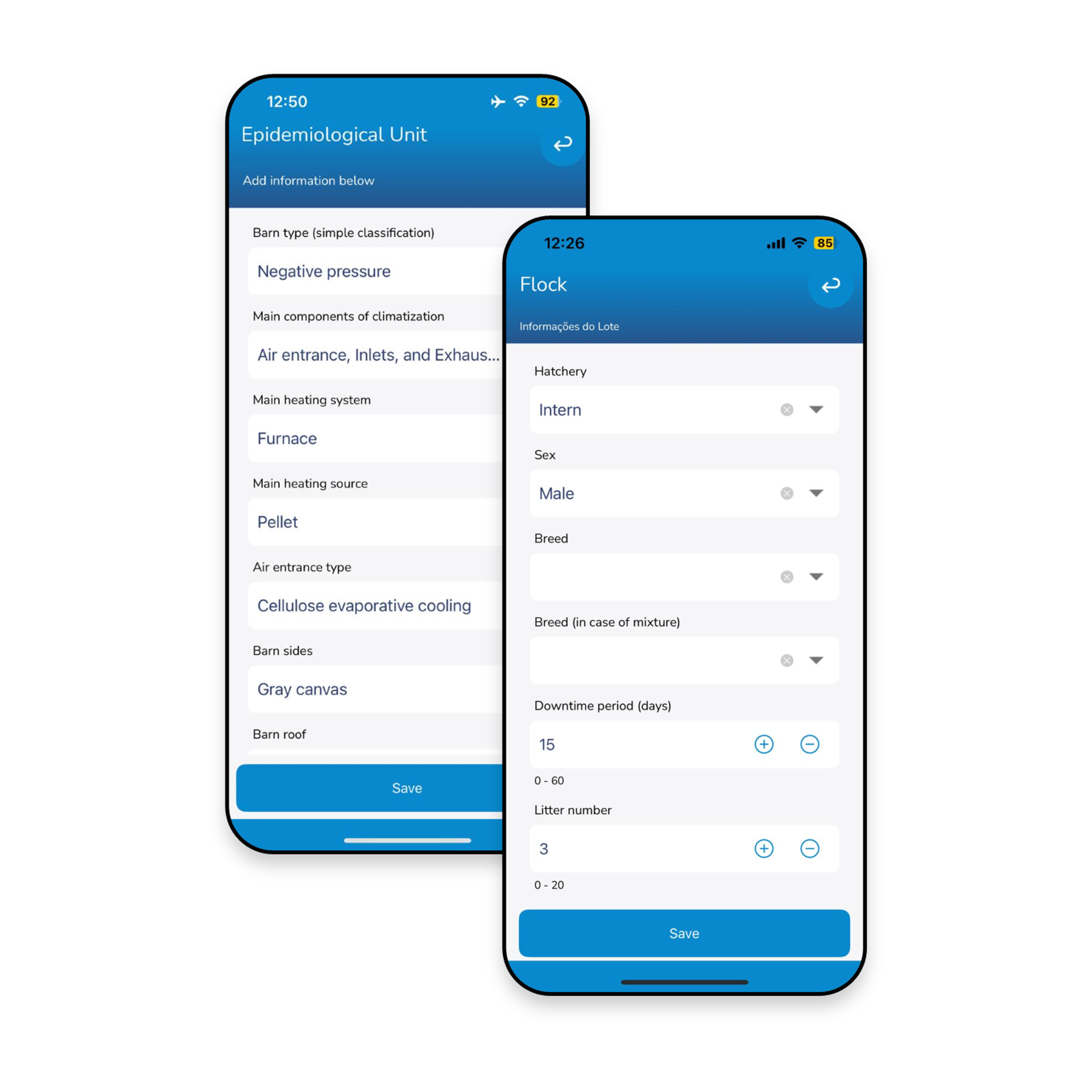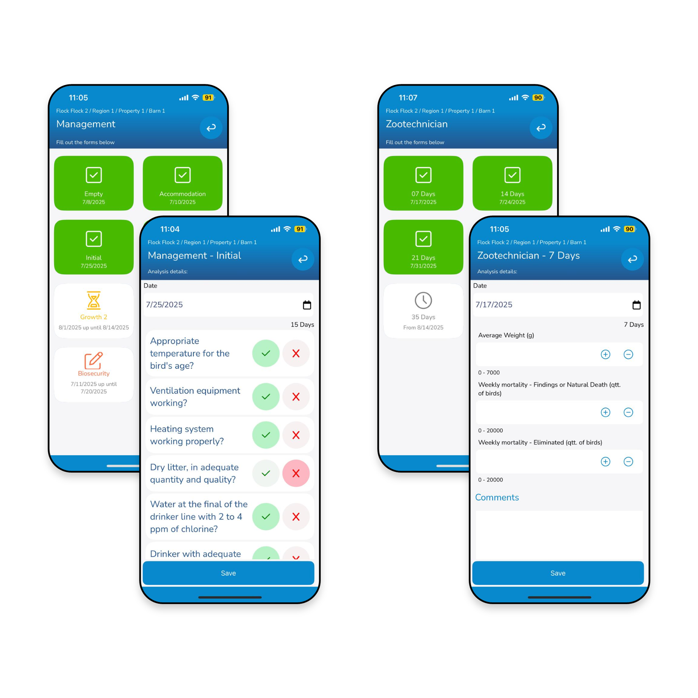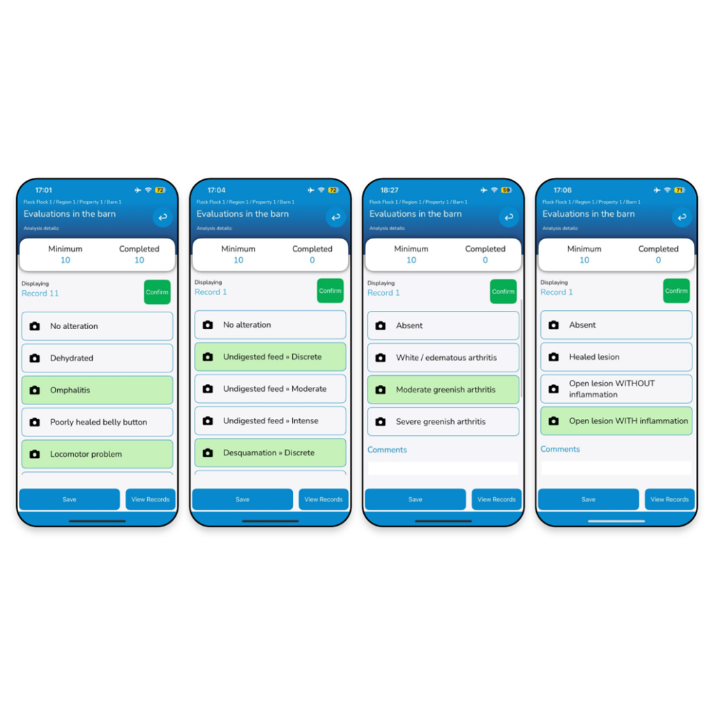 Avalie grandes amostras com formulários dinâmicos — ideal para avaliação de qualidade de pintinhos, pré-abate e qualidade das fezes.