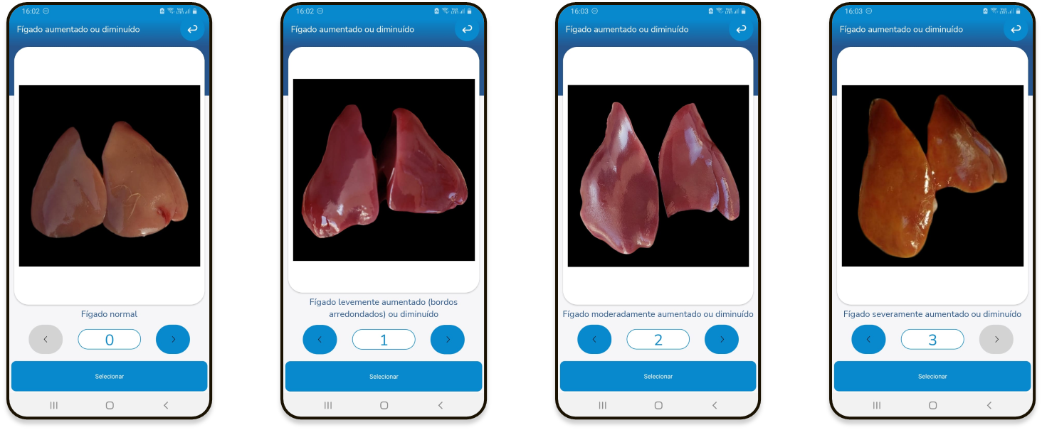 Os scores de intensidade de uma alteração são registrados no aplicativo e o avaliar conta com o auxílio de um guia ilustrado.